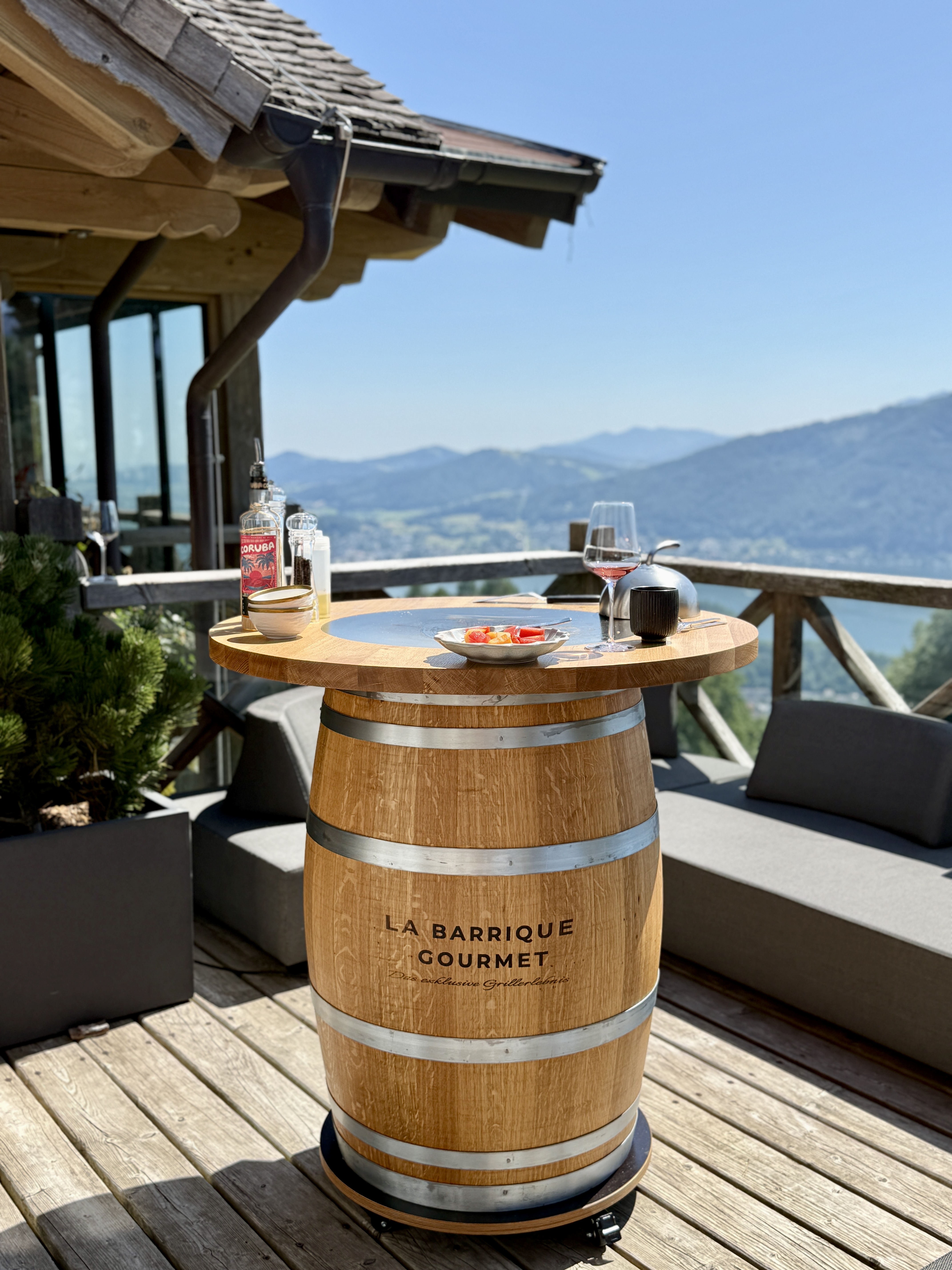 Hier wird nicht nur gegrillt – hier wird zelebriert. Die Nähe zum Gast, die hochwertige Haptik des Holzes und das durchdachte Konzept machen dieses Fass zum beliebten Mittelpunkt für Gruppen von 6 bis 8 Personen.