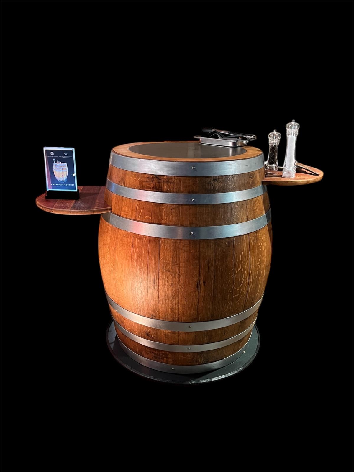 Ob als interaktives Front-Cooking-Highlight oder geselliger Treffpunkt: Die imposante Größe und die hochwertige Haptik des Holzes machen dieses Fass zum absoluten Star in jedem Ambiente.